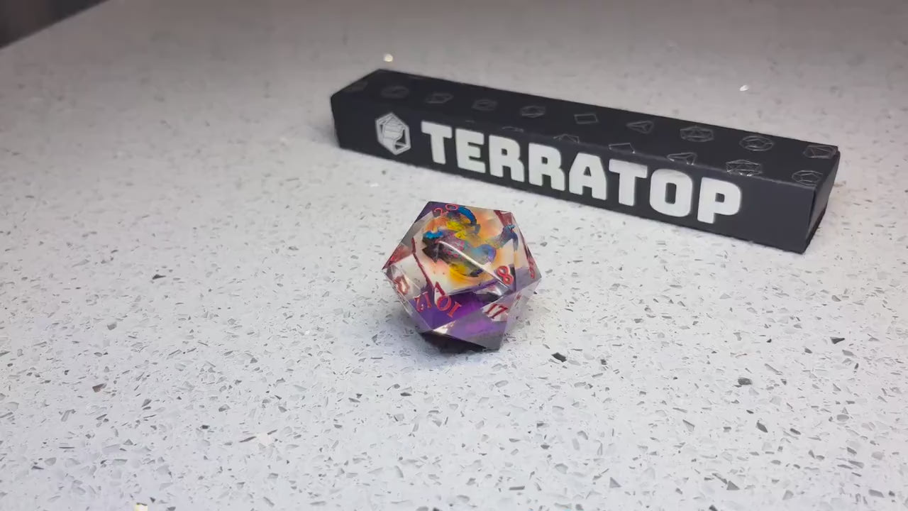 This handmade resin dice piece is crafted for Dungeons & Dragons and other tabletop RPGs. Our resin dice are polished to a shiny gloss finish.